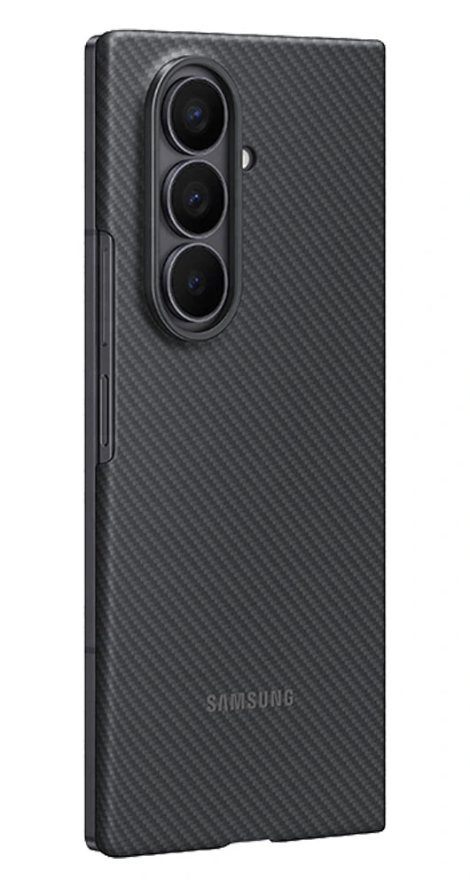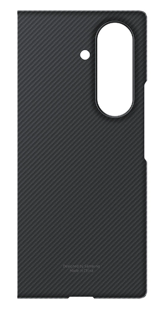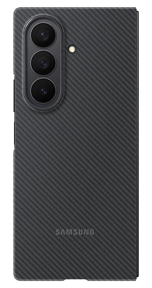 Ochranné pouzdro z odolného syntetického uhlíkového vlákna (aramid) pro Samsung Galaxy Z Fold7 • tloušťka pouhých 0,8 mm pro zachování štíhlosti telefonu • matný povrch v černé barvě • odolnost proti poškrábání a změnám vzhledu • pokrývá zadní část telefonu pro základní ochranu • součástí balení je i antireflexní fólie na přední displej • kompatibilní s bezdrátovým nabíjením • Nezakrývá pant ani hrany předního displeje, což umožňuje tenký profil