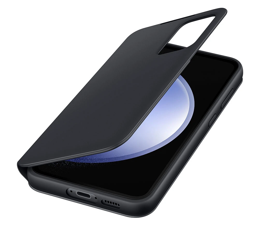 Flipové pouzdro Smart View pro Samsung Galaxy S23 FE • recyklované materiály • štíhlý profil krytu • příjemný úchop a pevné držení • hladký povrch • barva: černá