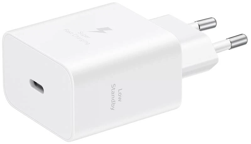 Originální Samsung cestovní rychlonabíječka do sítě s maximálním výkonem 45W • USB-C výstup • GaN technologie • Super Fast Charging 2.0, PD 3.0 PPS • Ochrana proti přebití, zkratu, přehřátí a přepólování • USB-C kabel dlouhý 1,8m v balení • Barva: bílá