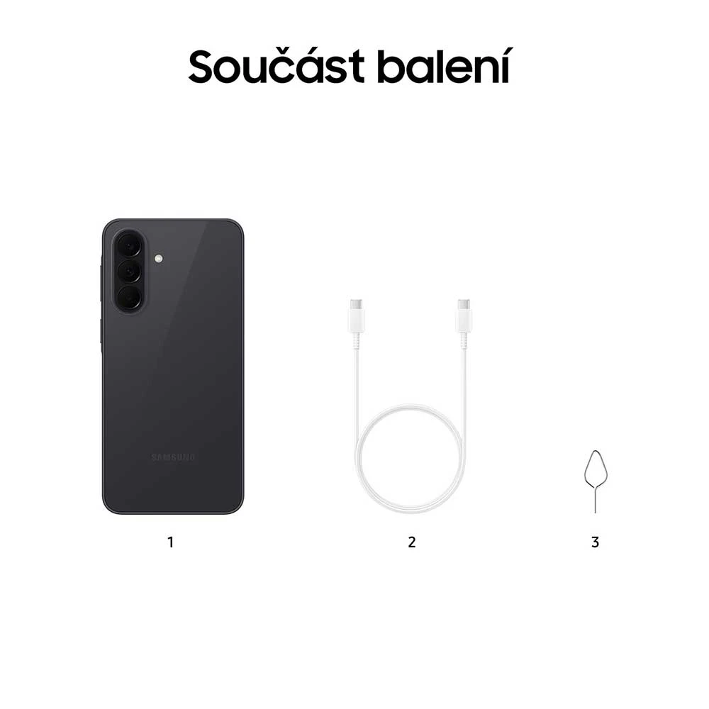 Mobilní telefon se 6,7" FHD+ SuperAMOLED displejem (2 340 × 1 080 px, 120Hz, 1200 nitů) • 8jádrový procesor Exynos 1480 • 8GB RAM • 256GB vnitřní úložiště • trojice zadních fotoaparátů – 50MPx (f/1,8) + 8MPx (f/2,2) + 5MPx (f/2,4) • OIS • přední 12MPx selfie kamera (f/2,2) • stereo reproduktory • optická čt. otisků • 5G • Wi-Fi 6 • Bluetooth 5.3 • NFC • GPS • USB-C • Dual SIM/eSIM • IP68 • 5 000mAh baterie s 45W rychlonabíjením • Android 16 • One UI 8.5 • barva: šedá