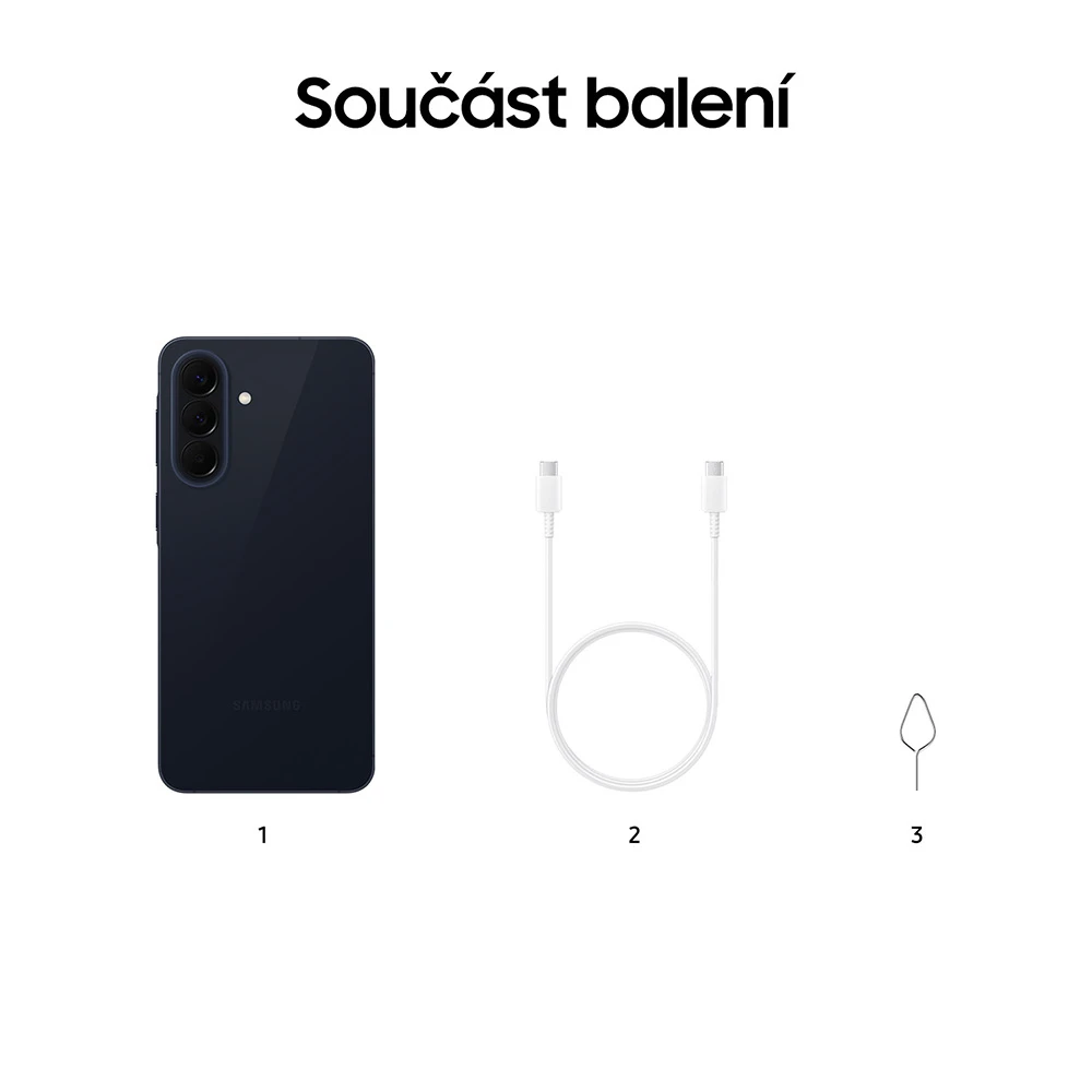 Mobilní telefon se 6,7" FHD+ SuperAMOLED displejem (2 340 × 1 080 px, 120Hz, 1200 nitů) • 8jádrový procesor Exynos 1680 • 8GB RAM • 256GB vnitřní úložiště • trojice zadních fotoaparátů – 50MPx (f/1,8) + 12MPx (f/2,2) + 5MPx (f/2,4) • OIS • přední 12MPx selfie kamera (f/2,2) • stereo reproduktory • optická čt. otisků • 5G • Wi-Fi 6E • Bluetooth 6.0 • NFC • GPS • USB-C • Dual SIM/eSIM • IP68 • 5 000mAh baterie s 45W rychlonabíjením • Android 16 • One UI 8.5 • barva: tmavě modrá