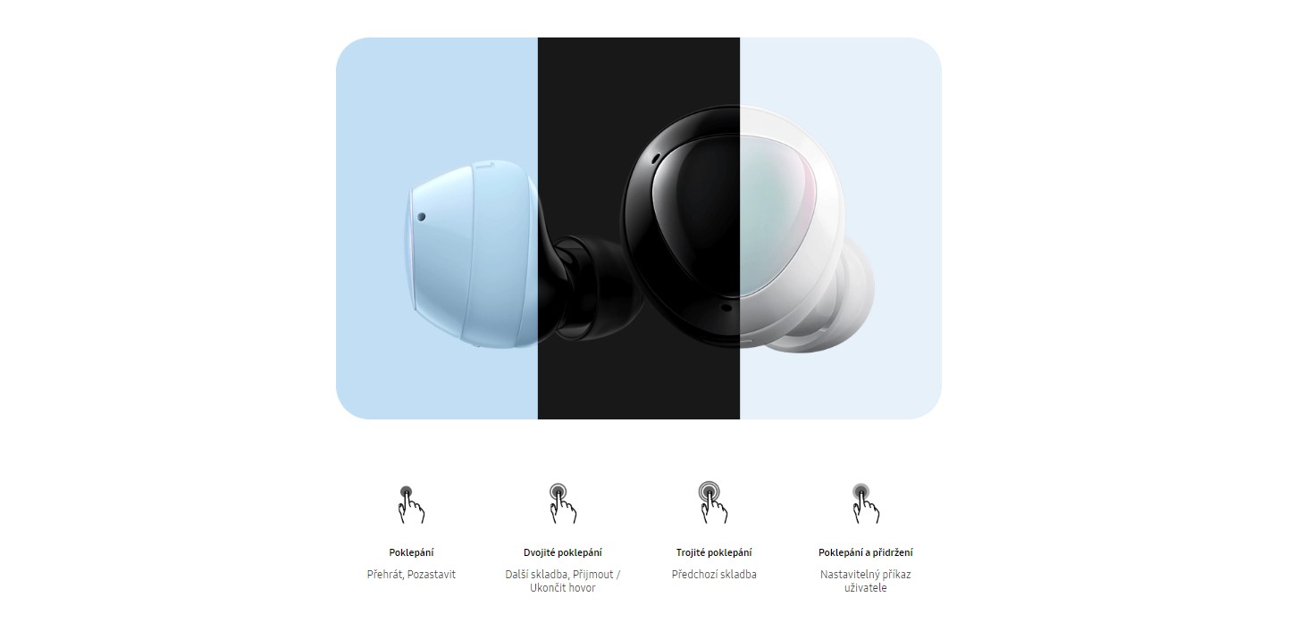"Dopřejte si kontrolu nad Galaxy Buds+ bez toho, že byste se museli zbavit volnosti a použít telefon. Ovládat funkce sluchátek, jako je hlasitost či přepínání skladeb v playlistu, nyní můžete jednoduchým ťuknutím na jejich touchpad.