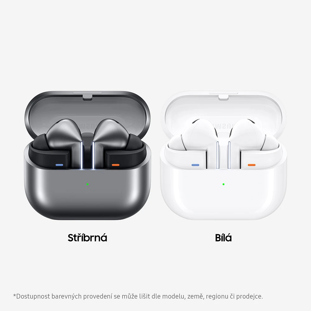 Prémiová TWS špuntová sluchátka • ergonomické tvarování • světelné indikátory • dvoupásmový reproduktor a duální zesilovač • 24bit rozlišení s vysokou kvalitou přenosu až 96 kHZ • pokročilé funkce Galaxy AI • technologie adaptivního potlačení hluku • režim Ambient • funkce Simultánní překlad skrz Galaxy AI a spárovaný Galaxy Smartphone • technologie 360 audio • aplikace Samsung Health a Calm • barva: stříbrná
