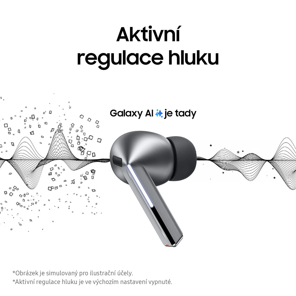 Prémiová TWS špuntová sluchátka • ergonomické tvarování • světelné indikátory • dvoupásmový reproduktor a duální zesilovač • 24bit rozlišení s vysokou kvalitou přenosu až 96 kHZ • pokročilé funkce Galaxy AI • technologie adaptivního potlačení hluku • režim Ambient • funkce Simultánní překlad skrz Galaxy AI a spárovaný Galaxy Smartphone • technologie 360 audio • aplikace Samsung Health a Calm • barva: stříbrná