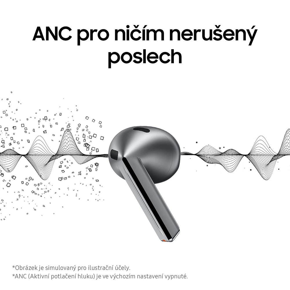 Bezdrátová TWS pecková sluchátka • 11mm reproduktor • 24bit kvalita zvuku • dvojice citlivých mikrofonů • adaptivní ekvalizér • pokročilé funkce Galaxy AI • funkce adaptivního potlačení okolního hluku • režim Ambient • obousměrný překlad v reálném čase skrze Galaxy AI a spárovaný Galaxy smartphone • funkce 360 audio • aplikace Samsung Health a Calm • barva: stříbrná