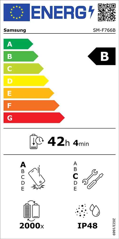 Mobilní telefon s ohebným 6,9" FHD+ Dynamic AMOLED 2X displejem (2 520 × 1 080 px, 1-120 Hz) • vnější 4,1" Super AMOLED obrazovka (948 × 1048 px,) • 10jádr. proc. Exynos 2500 • 12GB RAM • 512GB ROM • zadní fotoaparáty – 50MPx (f/1,8) + 12MPx (f/2,2) • OIS • přední 10MPx fotoaparát (f/2,2) • stereo reproduktory • Dolby Atmos • boční čtečka otisků • 5G • Wi-Fi 7 • Bluetooth 5.4 • NFC • GPS • USB-C • 4 300mAh baterie s rychlým i bezdrátovým nabíjením • Android 16 • IP48