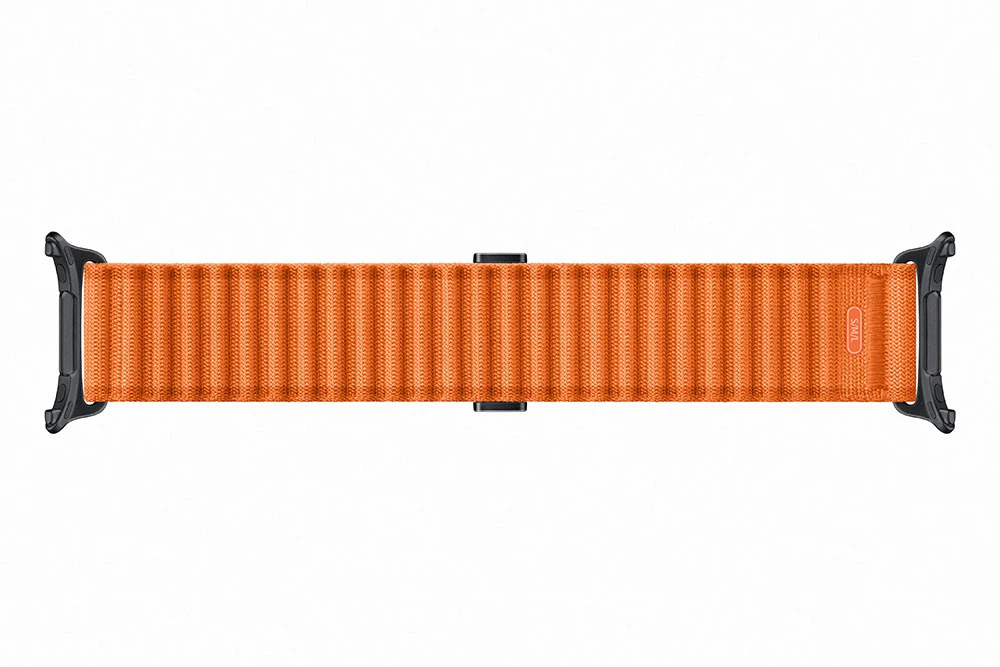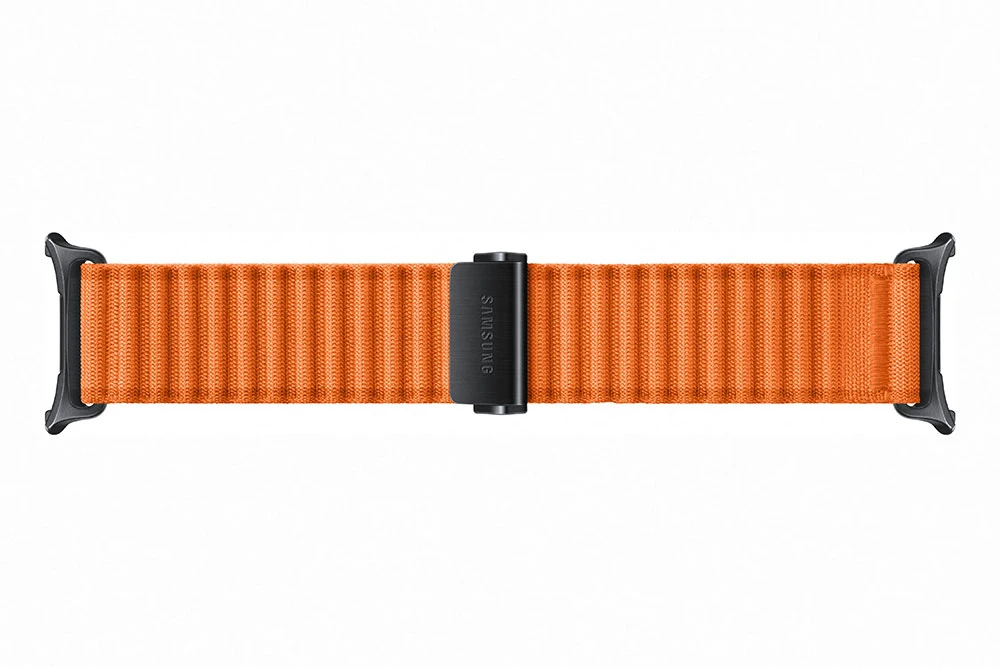 Originální látkový řemínek Galaxy Watch Ultra • Z prodšného vlnkovitého nylonu • Trojúhelníková západka a háček • Univerzální velikost • Barva: oranžová