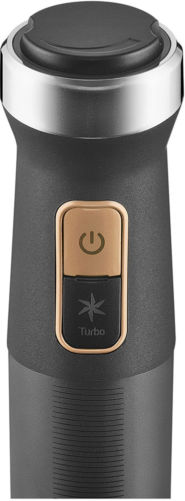 Bohaté příslušenství dělá z tohoto modelu skutečně univerzální přístroj. Food processor, sekáček, mačkač brambor, mlýnek na koření i napěňovač mléka vám umožní připravit kompletní menu od předkrmu až po dezert. Titanové nože QuadBlade zajišťují rychlé a rovnoměrné zpracování surovin při zachování chuti, vitamínů a minerálů. Ergonomická rukojeť, plynulá regulace rychlosti a bezpečnostní prvky zaručují pohodlné a bezpečné používání každý den.