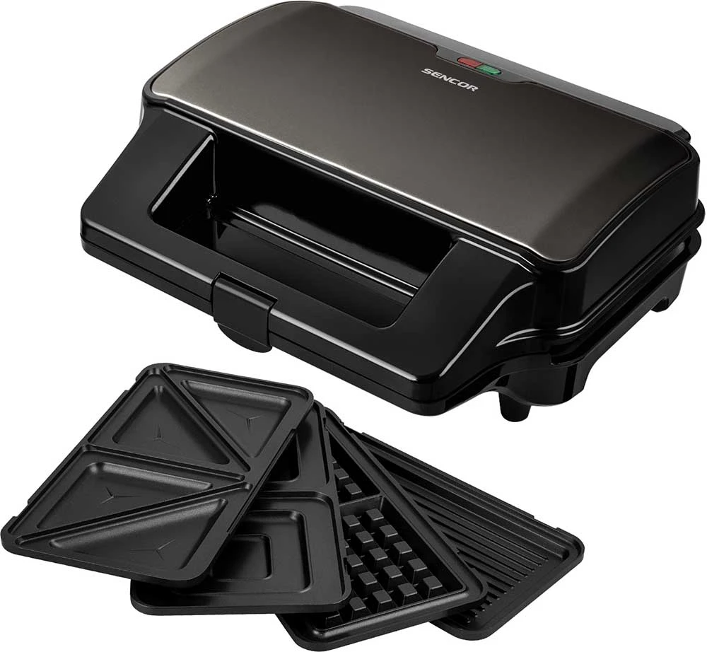 Sendvičovač Sencor SSM 9978BK je praktickým pomocníkem pro každodenní přípravu rychlých snídaní, svačin i sladkých dezertů. Díky čtyřem vyměnitelným pečicím deskám si snadno připravíte klasické toasty, vydatné panini, křupavé bagety i nadýchané vafle. Nepřilnavý povrch desek zajišťuje, že se jídlo nepřipeče a údržba je otázkou chvilky. Nadstandardně hluboké desky zabraňují vytékání náplně, zatímco výkon 900 W se postará o rychlé nahřátí. Elegantní metalické provedení navíc skvěle zapadne do každé moderní kuchyně.
