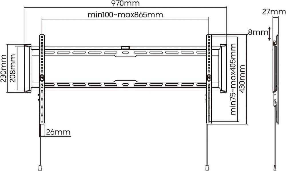 Držák TV, min. úhlopříčka obrazovky: 43", max. úhlopříčka obrazovky: 90", min. vzdálenost od zdi: 2,7 cm, max. vzdálenost od zdi: 2,7 cm, maximální nosnost: 75 kg, materiál: ocel