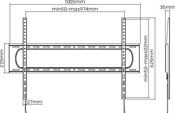 Držák TV, min. úhlopříčka obrazovky: 60", max. úhlopříčka obrazovky: 120", min. vzdálenost od zdi: 3,5 cm, max. vzdálenost od zdi: 3,5 cm, maximální nosnost: 120 kg, materiál: ocel