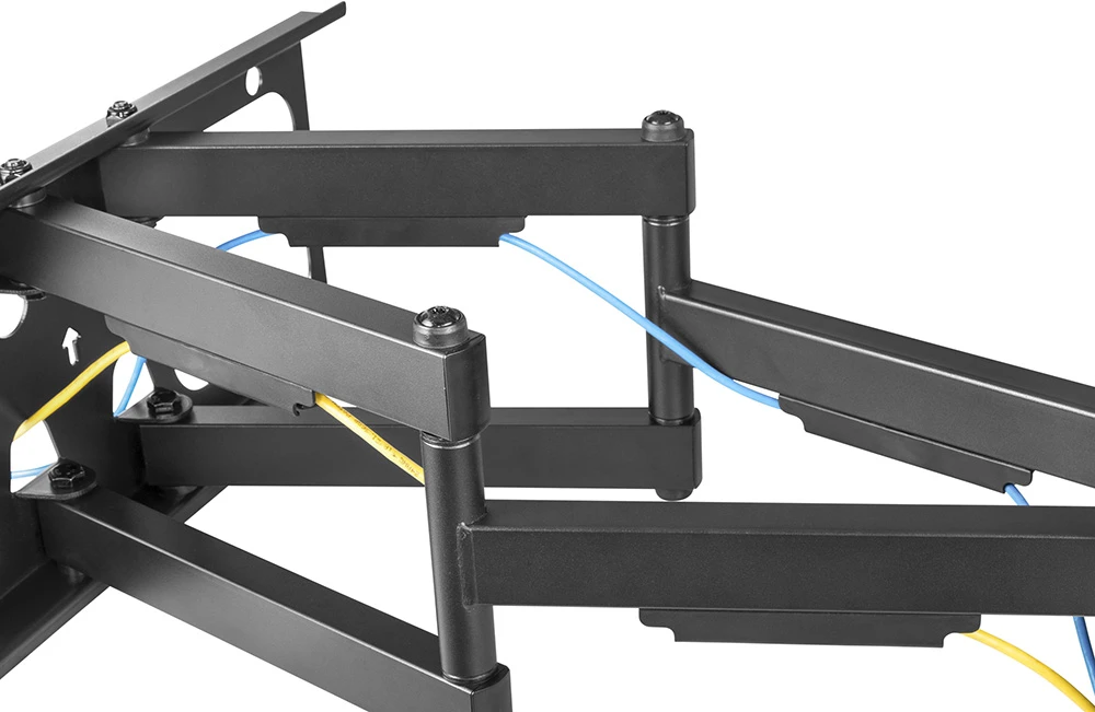 Výsuvný polohovatelný držák na TV, min. úhlopříčka obrazovky: 50", max. úhlopříčka obrazovky: 100", náklon nahoru: +5°, náklon dolu: -15°, natočení: +/-60°, korekce roviny: +/-3°, min. vzdálenost od zdi: 6,9 cm, max. vzdálenost od zdi: 63,5 cm, maximální nosnost: 80 kg, barva: černá, materiál: Ocel, "Pojistka" proti vysazení