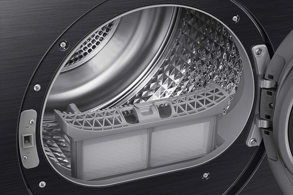 Díky pokročilé technologii digitálního invertoru je model DV80CGC2B0ABL výkonný a tichý, přičemž Samsung motoru natolik věří, že na něj dává 20letou záruku. Sušička je osazená filtrem 2 v 1 s dvouvrstvým systémem filtrování a sama si připomene, že filtr potřebuje vyčistit, abyste na údržbu nemuseli myslet. K bubnu s vnitřním osvětlením se dostanete přes dvířka, u kterých můžete volit směr otevírání.