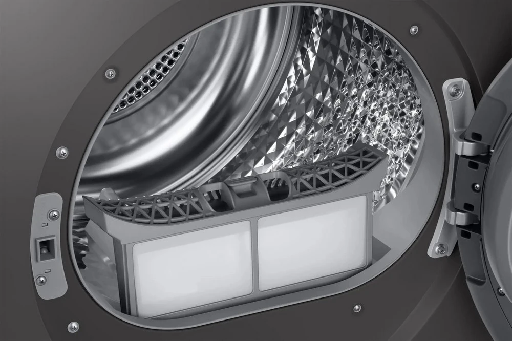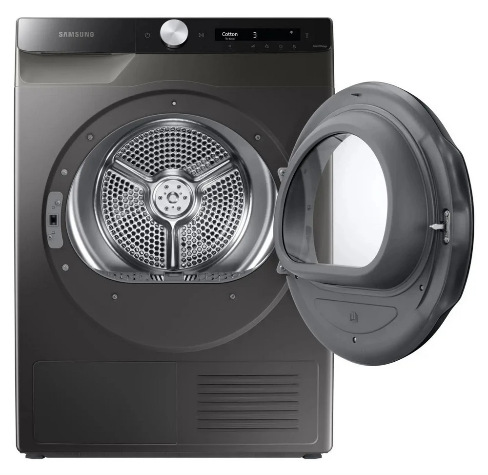 Sušička prádla s tepelným čerpadlem • kapacita: 9 kg • energetická třída A+++ • třída účinnosti sušení: B • senzorová technologie OptimalDry s umělou inteligencí • filtr 2 v 1 • displej AI Control • ochrana proti pomačkání • 14 programů • nerezový buben • odložený start/konec • dětská pojistka • vnitřní osvětlení • reverzibilní dvířka • sušicí nástavec • napojení na odpad • hlučnost: 63 dB • integrovaná WiFi • podpora SmartThings • rozměry: 85 × 60 × 60 cm (v × š × h) • barva: černá