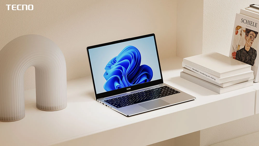 Výrobce si dal záležet na designu. Tělo je vyrobené z kovu, a to precizně, s důrazem na detail. Tecno se ostatně chlubí tím, že laptop můžete snadno otevřít jedním prstem. Potěší také možnost rozevření až do 180°. Přesto Megabook K15S váží jen max. 1,7 kg a má tloušťku pouhých 17,3 mm. V oblasti vzhledu a ergonomie si zaslouží pochvalu ještě dvě praktická řešení. V tlačítku napájení se skrývá čtečka otisků prstů a integrovaná webkamera má fyzický vypínač. Obojí zvyšuje vaši bezpečnost a úroveň soukromí při používání laptopu.