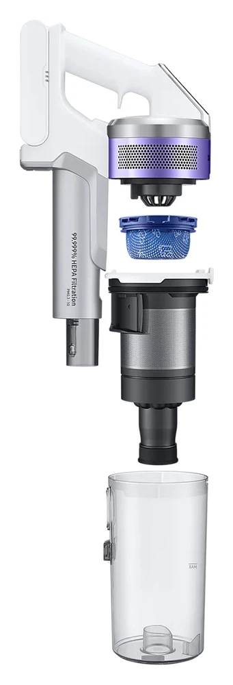Akumulátorový tyčový vysavač Samsung Jet 70 Easy potěší každého v neposlední řadě i systémem snadného čištění – 0,8l nádobka na nečistoty i multicyklónový systém jsou plně omyvatelné, takže obnovit kondici vysavače a maximalizovat jeho čisticí výkon je opravdu otázkou krátké chvíle. Samsung Jet 70 Easy VS15T7033R4/GE vás nebude nikterak zdržovat a vždy bude bleskurychle připravený do akce.