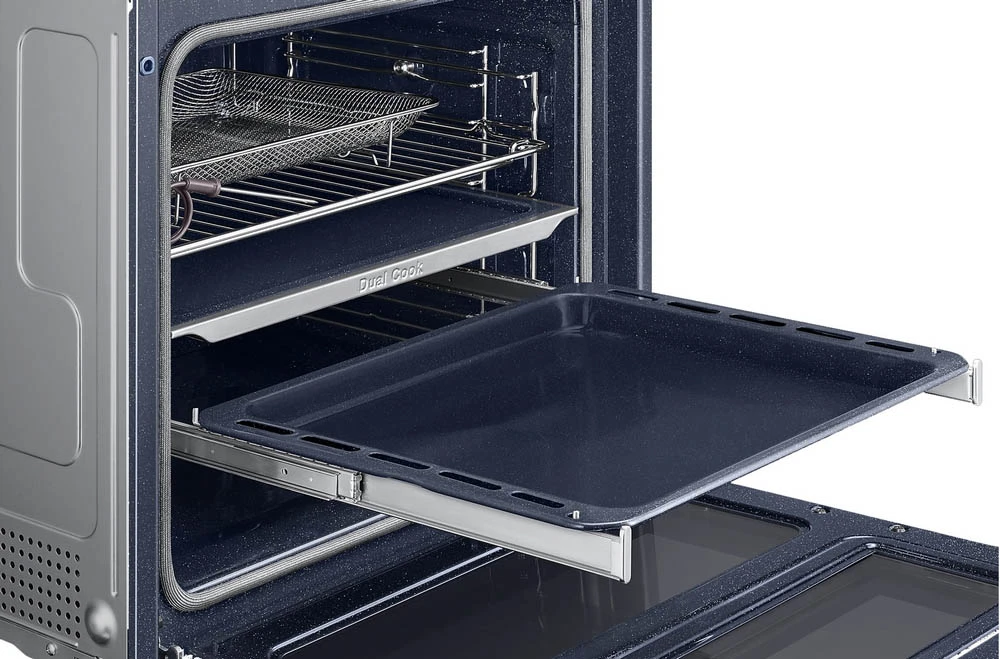 Samsung NV7B6795JAK/U3 Dual Cook Flex bez problémů pohostíte i početnou rodinnou oslavu či přátelskou sešlost na jeden zátah. Už se vám sbíhají sliny na sváteční husu nebo dozlatova propečenou kachničku? Komfort při obsluze vám zpříjemní také praktická teleskopická lišta, která se plynule vysouvá dovnitř a ven, a to i při těžké náloži. Vychytávky vestavné trouby Samsung NV7B6795JAK/U3 pokračují i čtyřnásobným dveřním sklem pro dokonalou bezpečnost, sondou na maso, Soft Close Door systémem (důmyslné panty dvířek pro jemné, tiché a bezpečné zavíraní/otevírání), dětskou pojistkou, časovačem, šikovným vnitřním osvětlením či přehledným 4,3palcovým LCD displejem s intuitivním dotykovým ovládáním. Třešničkou na dortu je pak celková mimořádná energetická efektivita stvrzená třídou A+.