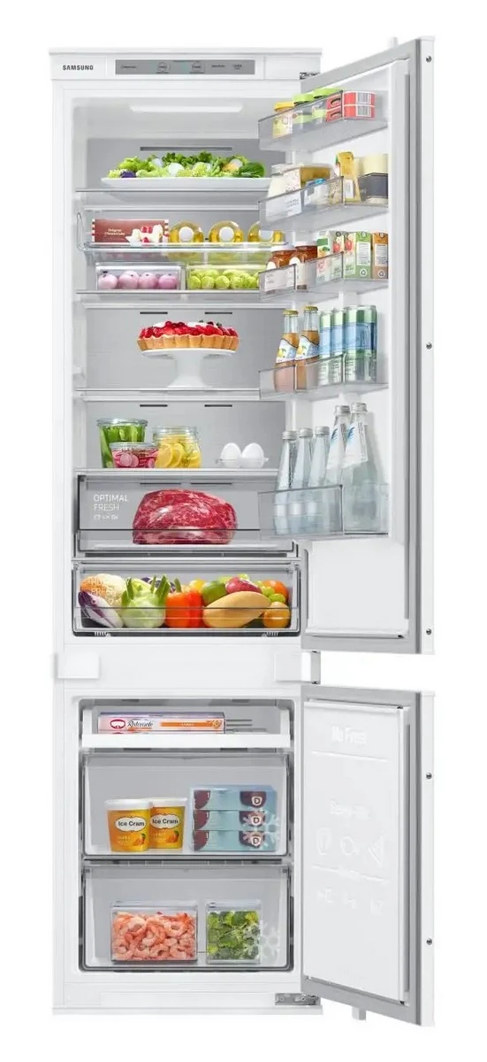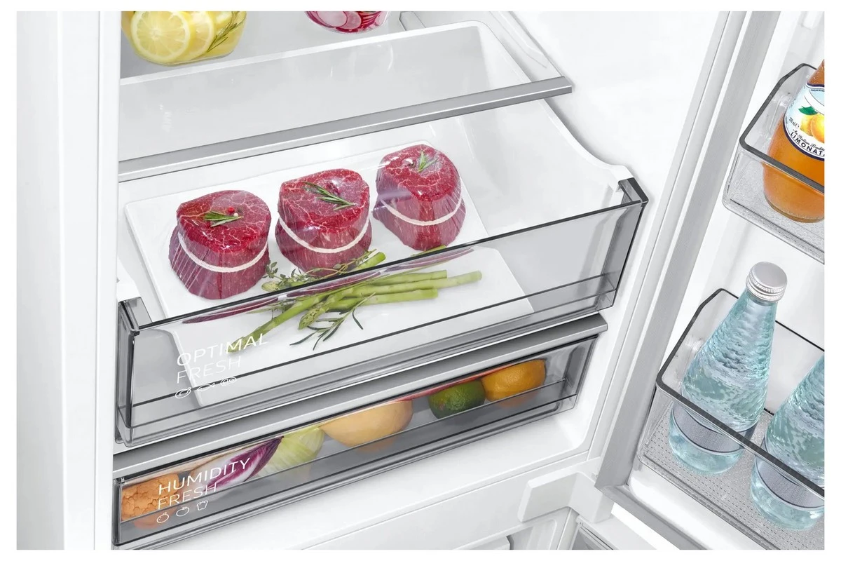 Vestavná lednice s mrazákem dole • en. třída E • objem 298 l (chladnička 224 l; mrazák 74 l) • 10letá záruka na kompresor • True No Frost • SpaceMax • Twin Cooling Plus chlazení • rychlé funkce Power Cool a Power Freeze • multifunkční police • zóna Cool Select+ • kovová deska Metal Cooling • LED osvětlení • klimatická třída: SN, T • hlučnost: 35 dB • posuvný pant • rozměry: 193,5 × 54 × 51,2 cm (v × š × h)