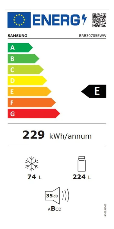 Vysoký standard výrobních procesů, důraz na špičkovou kvalitu a dlouhou životnost vestavné lednice Samsung BRB30705EWW/EF stvrzuje výrobce neobyčejnou 10letou zárukou na invertorový kompresor. Ten propůjčuje spotřebiči výjimečně tichý chod, prvotřídní energetickou úspornost a současně i inteligentní provoz, neboť automaticky reguluje svoji rychlost podle potřeb chlazení. Dle nových energetických kritérií spadá chladnička Samsung BRB30705EWW/EF do en. třídy E.