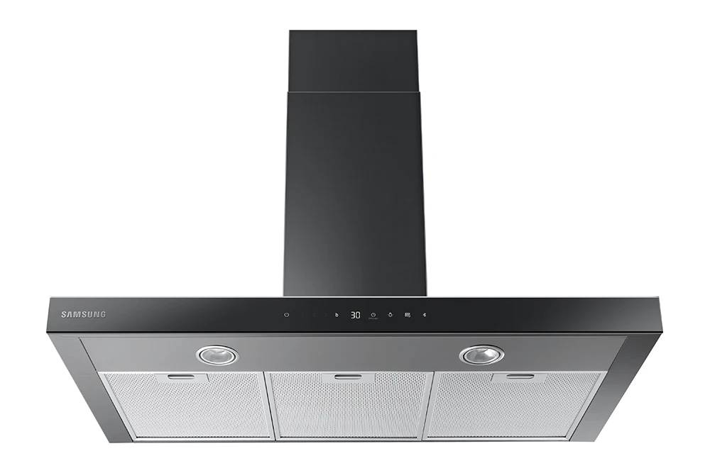 Pokud si pořídíte kompatibilní varnou desku Samsung, můžete získat přístup k unikátní funkci. Oba spotřebiče se umějí propojit přes Bluetooth, takže se dá digestoř ovládat přímo přes ovladače na desce. (Tato funkce je dostupná pouze v kombinaci s vybranými varnými deskami Samsung.)