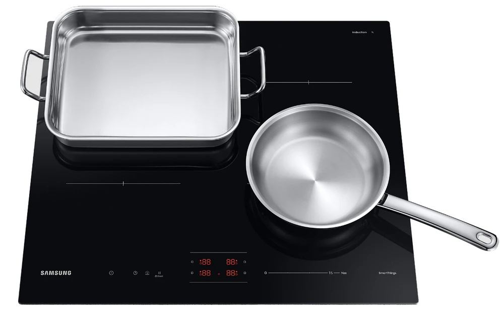 Vestavná indukční varná deska se 4 varnými zónami • Oval Zone pro pohodlné používání oválných hrnců a pánví • intuitivní posuvné ovládání teploty • Power Boost pro maximalizaci výkonu • minutka • automatická detekce hrnců/malých nádob • indikátor zůstatkového tepla • dětská pojistka • funkce automatického vypnutí • možnost ovládání přes Wi-Fi • podpora SmartThings • automatická konektivita s digestoří (Bluetooth) • čisté rozměry: 4,8 × 59 × 52 cm (v × š × h)