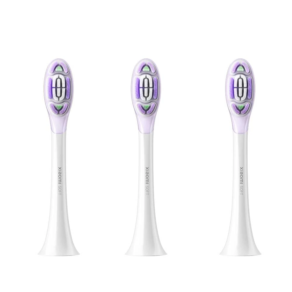 3ks náhradní hlavice elektrického oscilačního zubního kartáčku Xiaomi (Clean) • pogumovaný design pro efektivní tlumení vibrací • měkké pogumování • měkké štětiny bez mědi • příjemný na dotyk • kmitání šetrné k dásním • blednoucí barva štětin jako připomínka pro výměnu • doporučená výměna každé 3 měsíce
