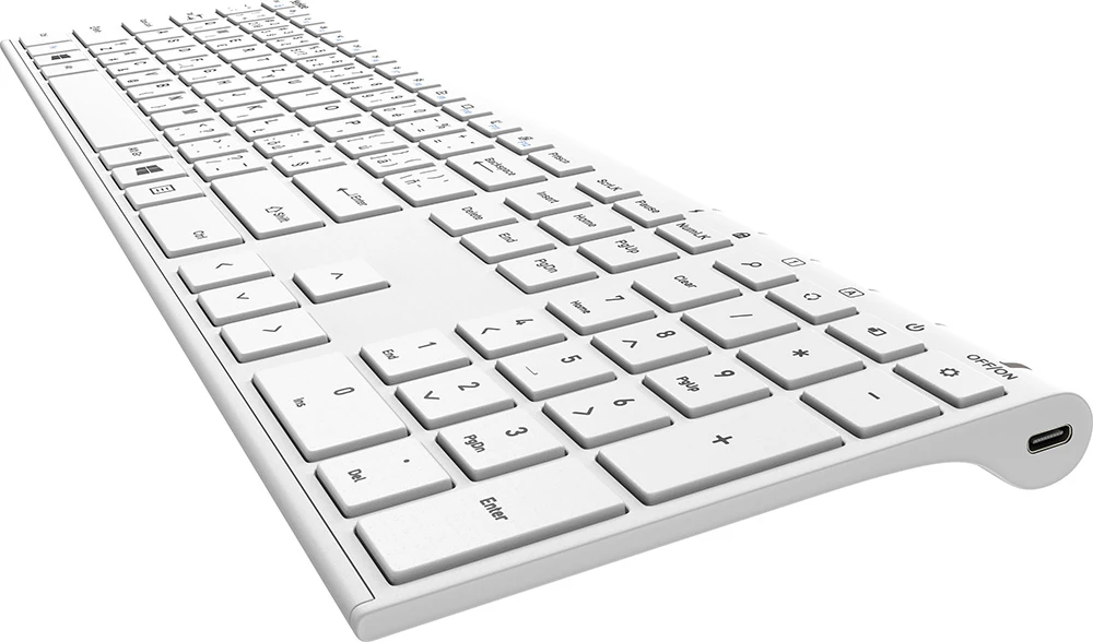 bezdrátová dobíjecí klávesnice TRIM; dobíjecí baterie a automatické vypnutí; nízký profil a tiché „scissor“ spínače; klávesnice plné velikosti a multimediální klávesy; dobíjecí klávesnice plné velikosti se spolehlivým 2,4GHz bezdrátovým připojením a provozním dosahem až 10 m. Tenké a; elegantní tělo vyrobené z prémiových materiálů kombinované se špičkovými nůžkovými spínači pro pohodlné psaní s; okamžitou odezvou na dotyk. Vestavěná dobíjecí baterie podporuje 90 hodin nepřetržité práce.