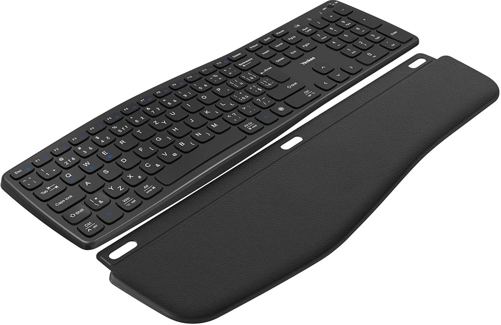 bezdrátová ergonomická klávesnice; duální připojení 2,4G + Bluetooth; tenký profil a odnímatelná opěrka rukou; tiché spínače a nízké klávesy; změňte způsob práce a interakce se zařízeními, zlepšete psaní, zvyšte produktivitu a udělejte dojem s naší stylovou ergonomickou klávesnicí bluetooth SWIFT. Vylepšete svůj pracovní prostor dokonalou kombinací designu, konektivity a stylu. Tato kompaktní a ergonomická klávesnice není jen nástroj pro psaní, ale také plynulý most mezi vašimi zařízeními.