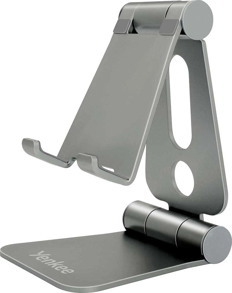 YENKEE YSM 01 ALU Držák • pro telefon i tablet • do úhlopříčky 7" • protiskluzová základna • nastavitelný sklon a výška • barva: stříbrná